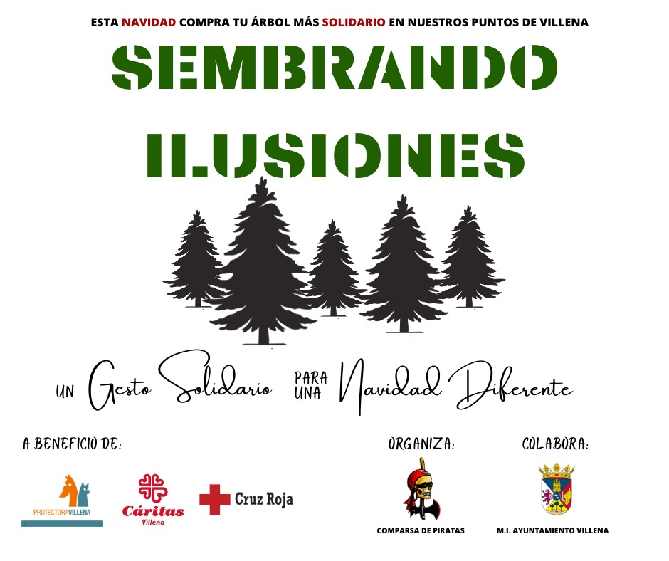 Adquiriendo nuestro arbolito solidario por tan solo 6 euros estarás colaborando con Protectora de Animales de Villena, Cruz Roja Española y Cáritas Villena. Asociaciones que luchan día a día sin descanso por conseguir un mundo másigualitario. Pero, además, con esta acción contribuirás a cuidar el medio ambiente.