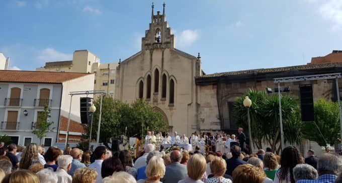 Después con el traje campero, el polvo del camino, el casco, el toque de elegancia y la estampita de recuerdo de Mi Primera Comunión, vueltecita al Paseo, a ver a los amigos del Club Natación Villena, luego partidito por aquí, unas canastas por allá, una tirolina para sentir el nudo en el estómago por la altura y la velocidad, y como una cosa lleva a la otra, ya que, ya que, y andando tan cerca, pues con el traje de campo, el polvo del camino, casco, el toque elegante, la estampita y la botellita de recuerdo de la FDM, a las Malvas, a lo de la Primera Piedra, que no podía dejar yo pasar por alto la visita del obispo. Vitoreé al Obispo al más puro estilo andalú, y me fuì viniendo arriba, hasta que noté una fuerte presión en el brazo derecho y un repellizco en el culo que me hizo dar un respingo. Mi dulce y añorada esposa, andaba a mi vera, con su traje de volantes y gesto serio, muy serio, cómo preguntándose dónde leches me había metido todo el fin de semana. No era momento de explicaciones, así que a su lado, apretado a su costado y casi sin respiración, nos situamos tras María Auxiliadora y procesionamos en silencio, un silencio tenso. Yo sé que mi esposa maldecía para sus adentros, mientras yo rezaba pidiendo un milagro: que no me cayera la del pulpo.