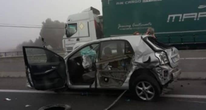 La densa niebla de esta mañana ha podido ser la causa de la colisión de cuatro vehículos en la A-31 dirección Alicante- Madrid, a la altura de Villena y en el que han resultado heridas dos personas por diversas contusiones.
