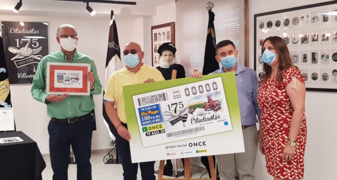 El presidente de la comparsa de Estudiantes, Juan Ángel Rodríguez Cuchillo, ha agradecido a la ONCE el que haya dedicado el cupón del sorteo del 19 de agosto a la entidad festera, “puesto que permite dar difusión de la comparsa a escala nacional”. En el cupón está representado por un lado el Castillo de la Atalaya, “como muestra del compromiso de la comparsa de Estudiantes por engrandecer las fiestas de Villena”, señala el presidente y por otro lado el logotipo del 175 aniversario.