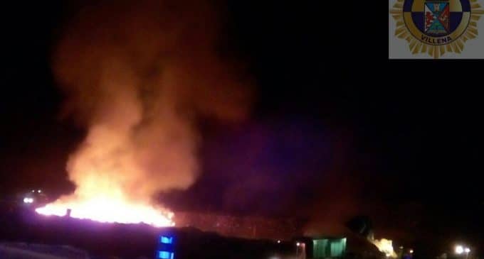 A alrededor de las 3:00 horas de esta pasada madrugada y con motivo del incendio de uno de los vasos de Reciclados del Mediterráneo, han acudido preventivamente una patrulla de la Policía Local junto con otra de la Guardia Civil, así como 2 camiones del Parque de Bomberos de Villena.
