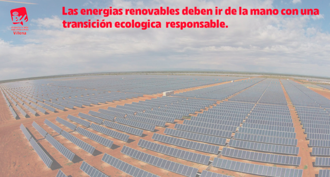 Desde el grupo de Izquierda Unida de Villena apostamos firmemente por las energías renovables. Por eso creemos que la instalación de este tipo de plantas fotovoltaicas debe ir de la mano con una transición ecológica responsable, que respete el medio ambiente y no se convierta en una nueva burbuja especulativa.
