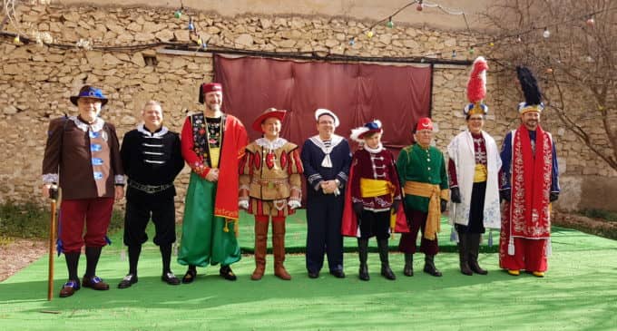 La comparsa de Cristianos de Villena estuvo presente, ayer domingo, en el desfile de la Media Fiesta que anualmente celebra la vecina ciudad de Elda y que, en esta ocasión, abrió el 75 aniversario de las fiestas de Moros y Cristianos de la ciudad. La Junta Central de Comparsas de Elda quiso recrear la fotografía que está presente en su sede y que muestra los trajes festeros, que vecinos de las poblaciones de Sax, Petrer y Villena les prestaron para salir a la calle en 1944 y así recuperar los festejos de la media luna y de la cruz.