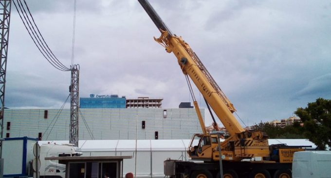 La empresa de Villena Grúas Garcia está trabajando en la construcción del hospital de campaña junto al General de Alicante.