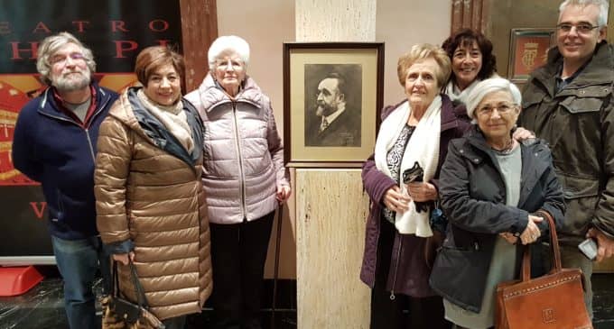 La familia Guillén Fernández se desplazó hasta el Teatro Chapí con el propósito de hacer entrega de un retrato de Ruperto Chapí, realizado a carboncillo por D. Juan Guillén Hernández a la edad de 14 años y dedicado a su maestro D. José Chanzá en el día de su onomástica.