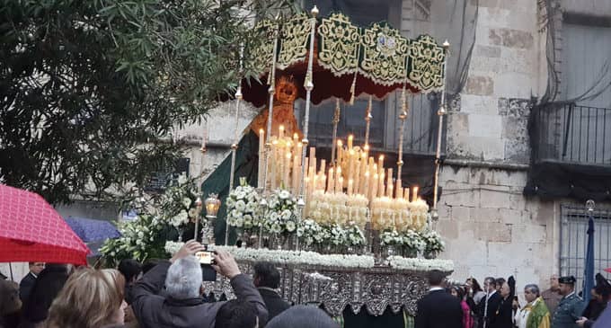 En la plaza las Malvas, la llovizna se convirtió en lluvia y la Hermandad decidió acortar el recorrido para evitar daños en las imágenes. Fue la única variación de una procesión que cada año se engrandece.