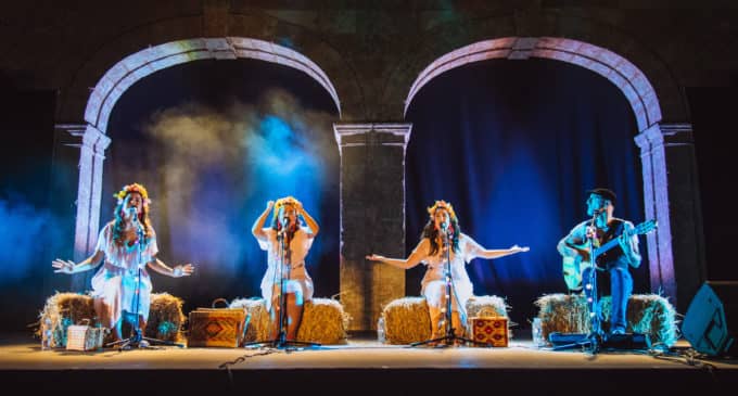 Paula Romero, Inés Salvado y Faia Díaz junto al guitarrista Guillermo Fernández son ‘De Vacas’, el grupo gallego que triunfa en internet con su cover de la canción ‘Despacito’. El cuarteto, que se acerca ya a las 600.000 visitas en YouTube, también ha lanzado versiones de Beyoncé o Pitbull. El viernes 28 de junio podremos disfrutar de su directo en la Plaza del Teatro a partir de las 22’30 h con acceso libre.