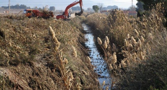 La concejalía de Urbanismo del Medio Rural de Villena ha iniciado una limpieza de urgencia en uno de los tramos de la Acequia del Rey desde la intersección con la carretera de acceso al santuario de Las Virtudes hasta la intersección con la carretera de Pinoso, eliminando la acumulación de cieno en el caudal motivada por el desprendimiento taludes.