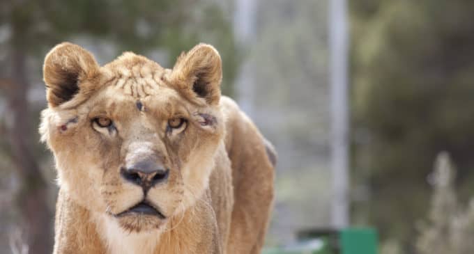 Los 2 leones procedentes de un circo que llegaron a la Fundación AAP Primadomus en penosas condiciones ya han pasado la cuarentena y han empezado a disfrutar de las instalaciones naturalizadas del Centro de Rescate en Villena, Alicante. Todavía se están recuperando de las múltiples lesiones, amputaciones y patologías derivadas de su vida anterior, pero el pronóstico veterinario es favorable. Pablo Delgado, responsable de Grandes Felinos ha declarado que “Las heridas están cicatrizando y las llagas y alopecias empiezan a remitir poco a poco. Los leones están mejorando, pero debido a que llegaron en unas condiciones deplorables y con muy bajo peso, la evolución es lenta”.