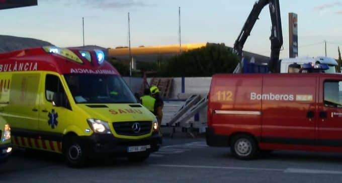 Ayer sobre las 19:30 horas desde el 112 se daba aviso de que el conductor de un camión que transportaba placas pesadas había quedado atrapado debajo de las mimas