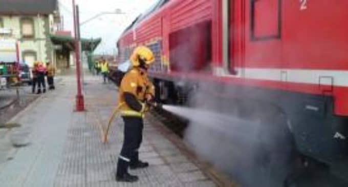 Una hora han empleado los bomberos de los parques de Elda y Villena en refrigerar un tren de mercancías que ha sufrido un incendio a las siete de la mañana de este lunes.