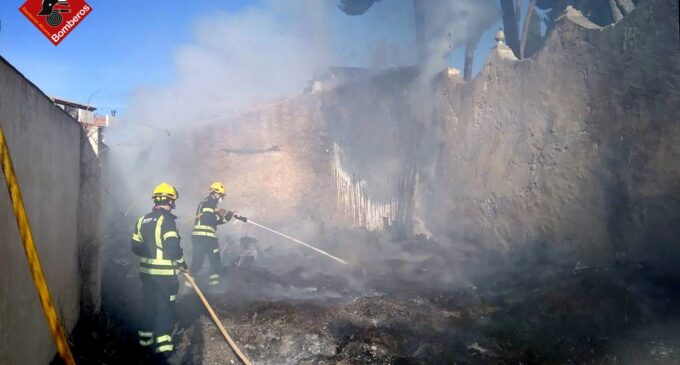 Los bomberos sofocan un incendio en un solar ubicado en la avenida del País Valencià en Biar.