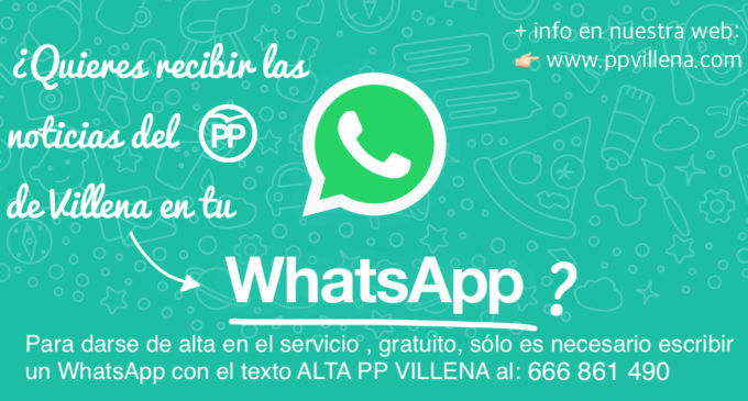 Para darse de alta en este servicio, totalmente gratuito, sólo es necesario escribir un WhatsApp con el texto ALTA PP VILLENA al número del teléfono habilitado para este servicio: 666 861 490. También es importante saber que este número se ha habilitado únicamente para el canal de WhatsApp, por lo que no podrá recibir llamadas.