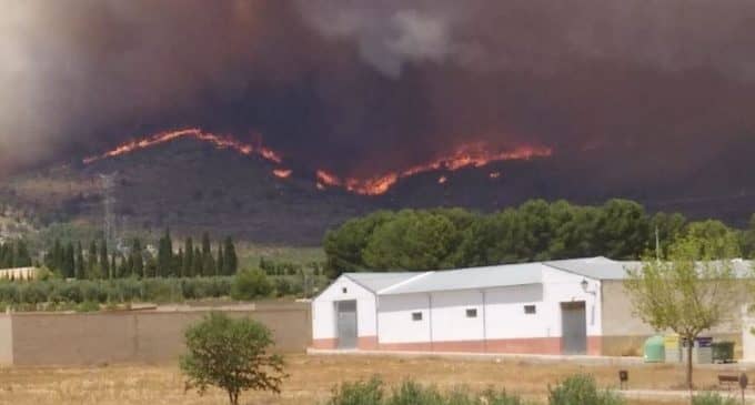 Medio centenar de bomberos están trabajando en al zona para apagar el incendio forestal, con trece medios aéreos y diez terrestres- diez dotaciones de bomberos de la Diputación de Alicante, 27 bomberos forestales de Valencia y Alicante y 5 agentes medioambientales.