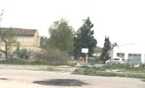 Las fuertes rachas de aire que se han iniciado de madrugada han motivado el derribo de un árbol junto al colegio Ruperto Chapí. El derrumbe ha provocado el desplazamiento de