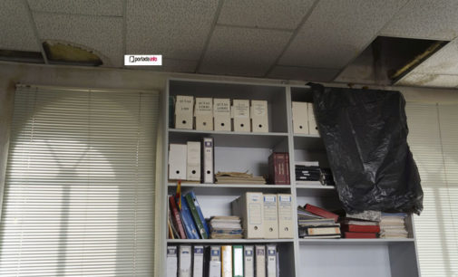 Las abundantes lluvias caídas durante el fin de semana ha provocado la aparición innumerables goteras en la última planta de la Casa Consistorial, así como el desprendimiento de parte de