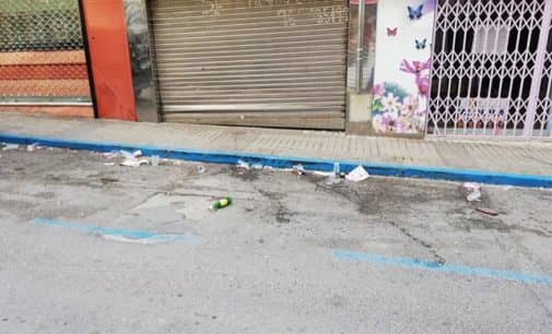 Tal y como nos trasladan los vecinos de la calle Juan Chaumel, esta mañana se han levantado con la calle llena de botellas y vasos de plástico. Los vecinos de