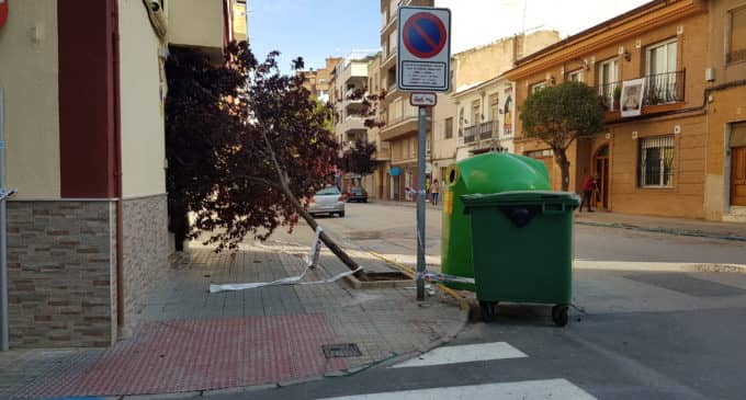 El viernes 19 de abril, el consorcio de Bomberos se empleó a fondo debido a los numerosos avisos recibidos por caída de árboles en la vía pública a las fuertes rachas de viento y agua. La fuerza del aire tiró un pino ubicado en la rotonda de la avenida Constitución intersección con la avenida La Paz, también tumbó un pruno en las calles Navarro Santafé y en San Francisco. El parque de la plaza de El Rollo se vio afectado con la caída de uno de los árboles ubicados en este jardín. Por otro lado, se cortó la carretera de Pinoso a la altura de la Boquera por riesgo a que se desbordarse la rambla que cruza esta zona.