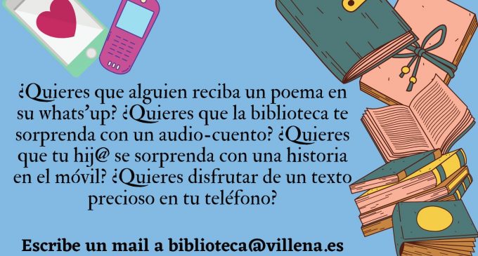 TEXTOS POR TELÉFONO ha sido la última iniciativa de las Bibliotecas de Villena para celebrar la Semana del Libro que ha sido tan extraña en esta ocasión debido a las circunstancias que estamos viviendo. Aún así, las bibliotecas de Villena han intentado que el 23 de abril, Día del Libro, no pasara desapercibido y además de la repartición de libros con el que el Ayuntamiento ha obsequiado a todos los niños y niñas de nuestra población de entre 3 y 12 años — iniciativa que mereció la aparición de las bibliotecas en “La ventana” de la Ser con Carles Francino al haber participado en la selección de los autores locales con obras indicadas para esas edades — y las sesiones de cuentos para distintas franjas de edad cada tarde, en directo, dentro de la campaña “Leer es crecer” de la mano de Miguel Ángel Montilla, se añadió una nueva actividad que resultaba novedosa: el envío de audios bajo petición de nuestros usuarios y usuarias para aquellas personas que desearan.