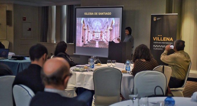 La concejala de Turismo de Villena, Mercedes Menor, junto al edil de Deportes, Luís Pardo y el gerente de Sufriendo & Gozando, Marcos Rubio, se desplazaron a Madrid para presentar en un desayuno con 30 medios nacionales los atractivos turísticos de la población tanto a nivel gastronómico, como patrimonial y cultural.