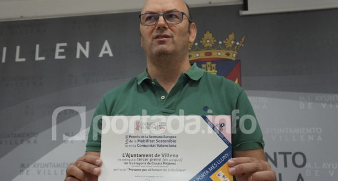 El Ayuntamiento de Villena ha recibido el tercer premio en la categoría de ciudades medianas, que otorga la Conselleria de Habitatge dentro de la Semana de la Movilidad de la Comunidad Valenciana. El galardón se ha otorgado por las medidas implementadas en el municipio para fomentar el uso de la bicicleta. El reconocimiento es compartido con la población de Riba Roja, así el primer premio ha recaído en Sueca y el segundo en Ontinyent.