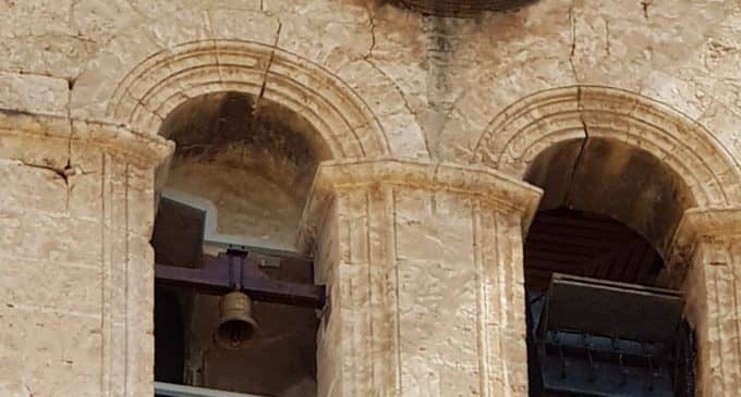 Las seis campanas y la matraca de la iglesia de Santiago en Villena han vuelto a ser colocadas esta mañana en la torre del templo, tras haber sido sometidas a un minucioso trabajo de restauración.