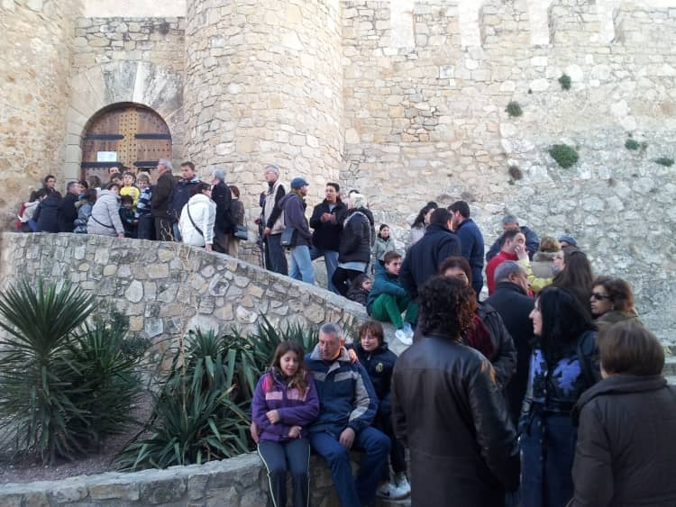 La iniciativa de abrir las puertas del castillo de Villena de forma gratuita a lo largo del fin de semana consiguió una imagen inaudita: grandes colas de vecinos de la localidad y de poblaciones cercanas agolpándose a su entrada. Todos ellos esperaron pacientemente para ver su nuevo aspecto interior, después de más de un año de obras.