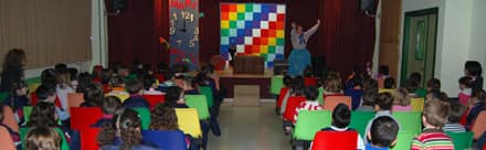 2500 escolares de toda Villena procedentes de todos los colegios de la ciudad, Grec, Joaquín María López, Celada, Ruperto Chapí, Píricipe Don Juan Manuel, Ntra. Sra. de los Dolores, Encarnación, Mª Auxiliadora y La Encina, a partir de esta mañana, están asistiendo a las representaciones de la compañía “Forum Teatro” a cargo de un cuenta cuentos con tres obra teatrales (“Igloo” , “monsters” y “Mary Magic”) , adaptadas a su ciclo educativo que, previamente, han trabajado en clase.