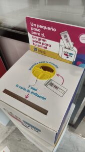 2. Una vez recogida la muestra siguiendo las indicaciones. La muestra y la carta recibida se deposita en el contenedor del centro sanitario habilitado para ello.