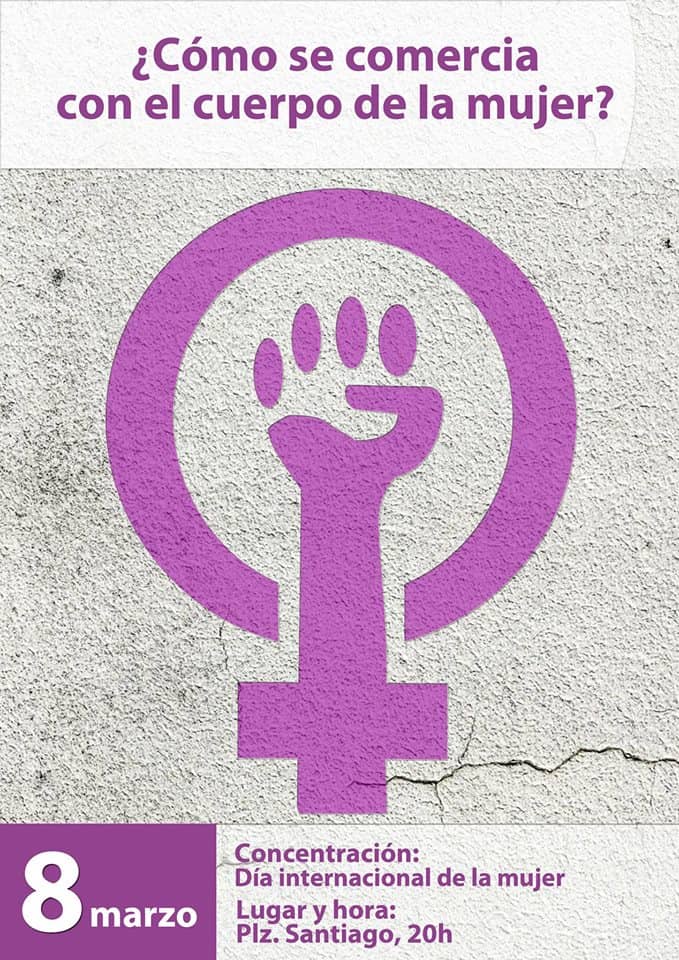 Por esta razón, el día 16 de febrero a las 8 de la tarde y a instancias de Izquierda Unida, se reúnen Los Verdes, PSOE, Podemos, Ciudadanos, las asociaciones Valkyrias, el Colectivo Luna de Mujeres, Amigos de la Historia y el Foro Económico y Social y deciden convocar a la ciudadanía a la concentración que tendrá lugar el día 8 de marzo a las 8 de la tarde en la Plaza de Santiago.