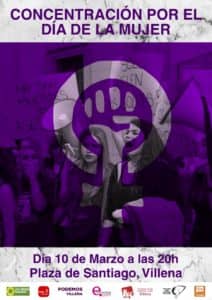 Villena saldrá el día 10 de marzo a las 20:00 horas a la Plaza de Santiago por el Día Internacional de la Mujer a través de una concentración impulsada por diversos partidos políticos y asociaciones.