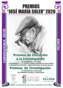 La Fundación Municipal “José María Soler”, convoca los Premios de Iniciación a la Investigación y los Premios de Investigación 2020, con objeto de promover y fomentar el conocimiento del patrimonio histórico, cultural y natural, de Villena y poblaciones de su entorno.