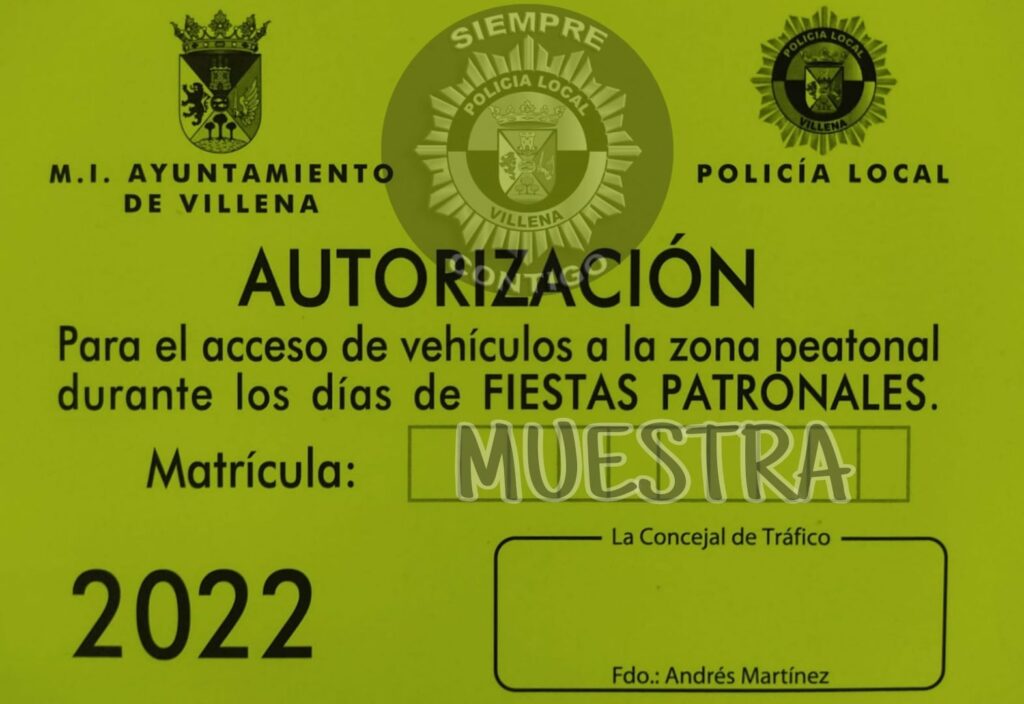 Recuerda que la autorización permite la entrada y salida a cocheras y NO el estacionamiento en la zona peatonal , desde la finalización de las dianas festeras hasta las 22’00 horas siempre que no se esté celebrando cualquier evento relacionado con las Fiestas, fuera de dicho horario no se permitirá el tránsito de vehículos por la zona peatonal.