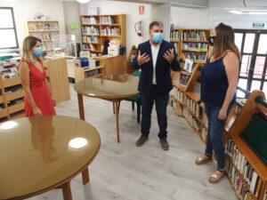 El alcalde, Fulgencio Cerdán, ha acompañado a la edil de Bibliotecas, Eva García, para comprobar el nuevo estado de las instalaciones que vuelven a abrir sus puertas al público. La biblioteca Miguel Hernández tiene actualmente un horario de 9:00 a 13:30 horas. Dispone de restricción de aforo y es obligatorio el uso de mascarilla protectora y gel desinfectante a la entrada.