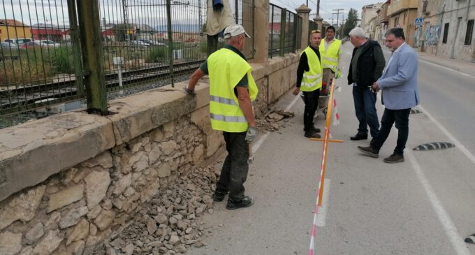 El alcalde de Villena, Fulgencio Cerdán, ha celebrado el inicio de las obras de reparación del muro que separa la calle Juan Gris con la playa de vías del ferrocarril, una acción que arranca tras tres intensos años de negociación y reivindicación por parte del equipo de gobierno municipal. Cerdán, que visitó esta mañana el lugar para comprobar in situ el avance de las obras, ha explicado que “desde hace tres años alertamos a ADIF del estado de este muro, cuya situación generaba dos peligros: primero, el riesgo de derrumbe tanto para los peatones como para los vehículos a su paso; segundo, la desprotección del área de vías y el riesgo para la seguridad que ello supone”.