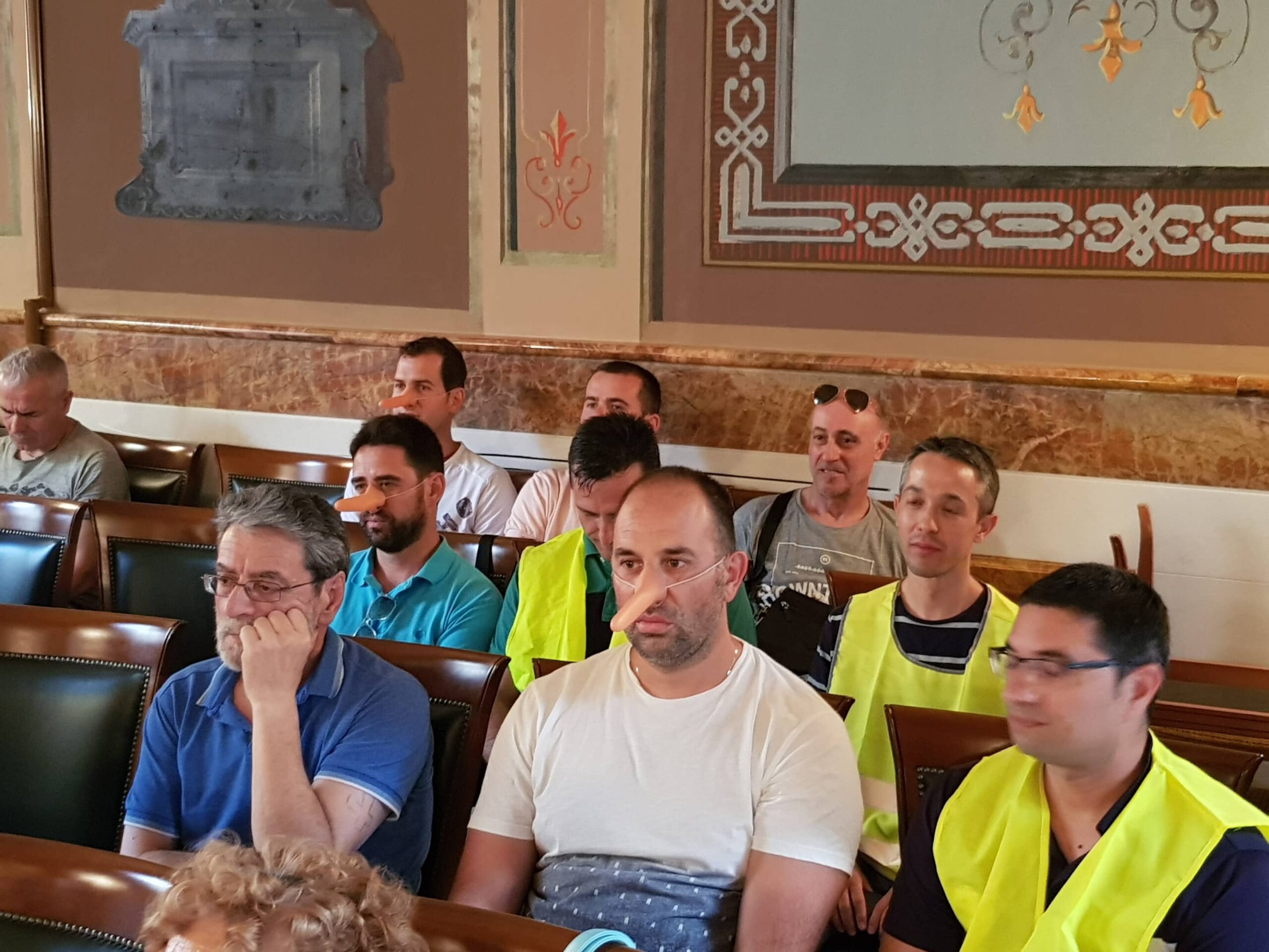 Un pleno de narices. Agentes Policía Local de Villena acudieron al pleno de Villena con narices de pinocho para decirle al alcalde, Javier Esquembre, que «miente». Los sindicatos del cuerpo de seguridad han iniciado una campaña para reclamar el complemento salarial, que desde el equipo de gobierno se ha reconocido que deben de cobrar, aunque en la nomina de este mes no se ha visto reflejado. Una reivindicación que llevan exigiendo más de una década.