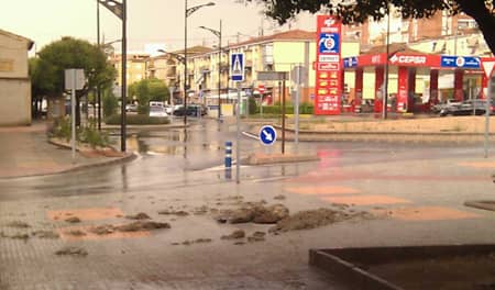 A la altura de la nueva rotonda de la avenida de Juan XXIII, concretamente en la avenida Constitución la red de alcantarillado no pudo asumir el agua de la tromba, por lo que las arquetas se levantaron y comenzó a aflorar los residuos fecales a la superficie.