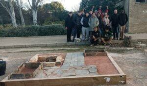 La prueba de la especialidad de Jardinería consistió en la realización de un camino de adoquines, un solado de lajas de pizarra, dos parterres con bordura de lajas y un estanque seco con piedra de mampostería, todo en un espacio de 2,5 x 2,5 metros.