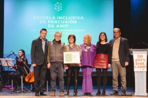 AMIF ha recibido el reconocimiento es esta edición por su proyecto de ‘Escuela Inclusiva de Percusión’, donde la música es una herramienta para el desarrollo de aquellas personas con dificultades concretas y que gracias a la práctica musical pueden encontrar esferas de crecimiento personal, de relación entre ellas y de espacio de ocio compartido.