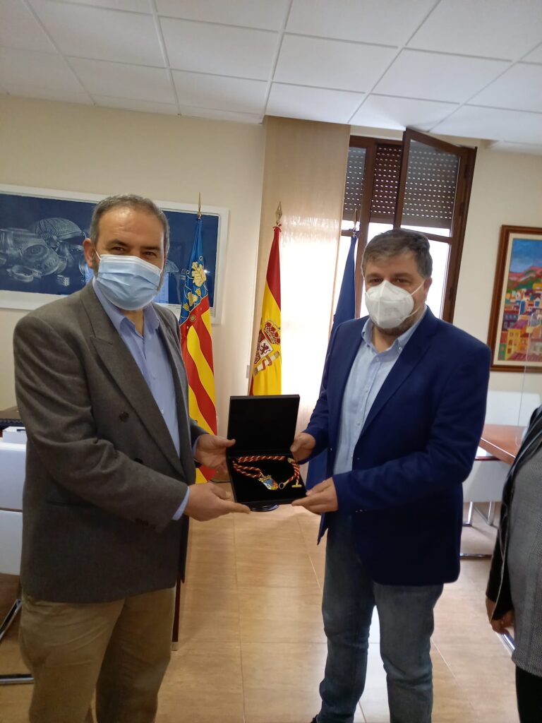 El nuevo edil en el Ayuntamiento de Villena, Antonio Pastor, miembro del Grupo municipal Verdes de Europa, recibió hoy de manos del alcalde, Fulgencio Cerdán, la medalla y el pin de concejal, tras su toma de posesión en el pasado pleno ordinario, celebrado telemáticamente. La entrega protocolaria tuvo lugar en el despacho de alcaldía, arropado por el primer teniente de alcalde, Francisco Iniesta, y la edil de Turismo, Paula García.