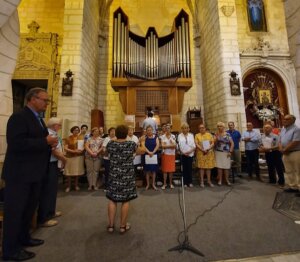 Han sido numerosas las propuestas que se presentaron para designar el “Santiago del Año” 2024. Finalmente, la comisión de fiestas en Honor a Santiago Apóstol, acordó entregarlos a la Asociación de personas afectadas por el cáncer APAC y al Coro Parroquial en su directora Mª Carmen Tomás y organista Pascual Hurtado.