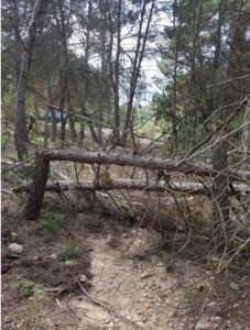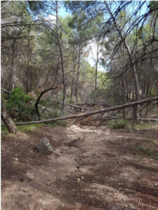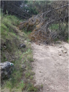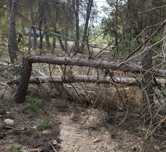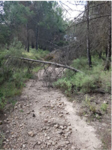 Árboles caídos cortan el sendero de la Cueva del Lagrimal