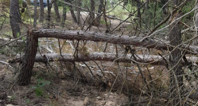 Árboles caídos cortan el sendero de la Cueva del Lagrimal