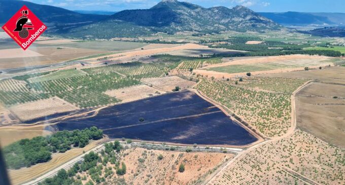 Una hectárea y media de cereal ha ardido en La Encina tras detectarse un incendio de vegetación y balas de paja en esta pedanía de Villena. El fuego pudo afectar a una pinada cercana, sin embargo la intervención de los bomberos evitó la propagación del incendio que podría haberse originado tras una avería mecánica en una máquina cosechadora.