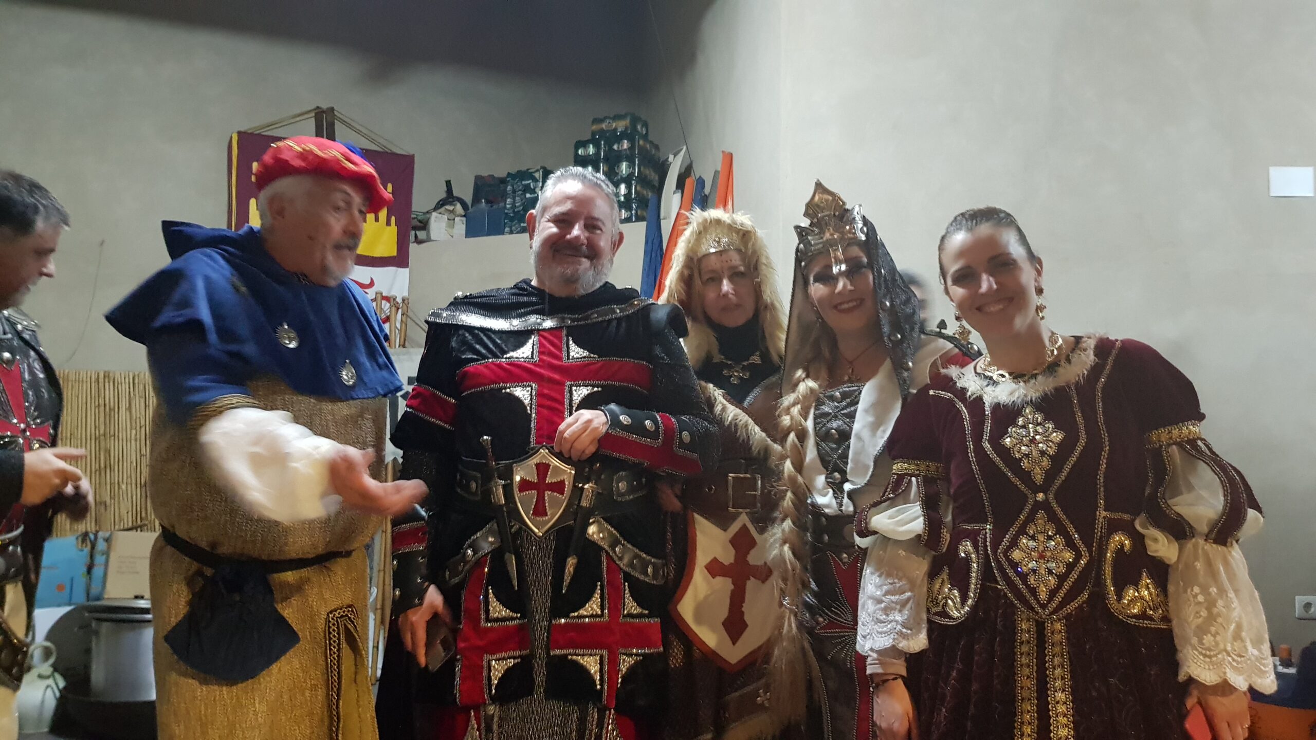 Vecinos y villeneros tenían ganas de Fiestas del Medievo, por ello, y pese a la lluvia persistente las Fiestas del Medievo han comenzado en Villena. Tras momentos de incertidumbre, puesto que el agua impedía desarrollar la teatralización de la visita de los Reyes Católicos a Villena – Isabel de Castilla y Fernando de Aragón en 1488-, y con media hora de retraso según el programa, finalmente se ha optado por llevarla a cabo la representación. El grupo Caricato acompañado de concejales y el alcalde de Villena han realizado la teatralización en el centro de la plaza de Santiago, sin micrófonos, a capela, y bajo una fina cortina de agua.