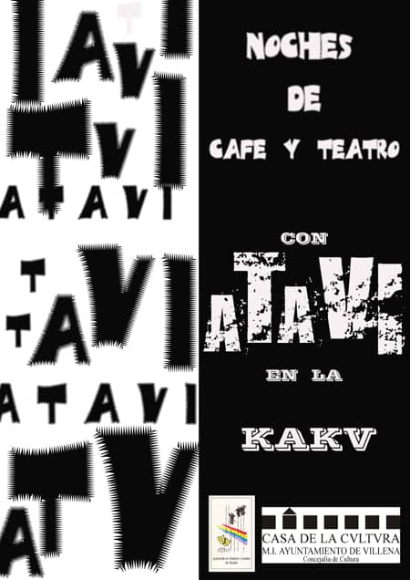 ATAVI (Asociación de técnicos y actores de Villena), inicia su habitual temporada de CAFE TEATRO el próximo sábado 26 de enero a las 22,30 h en la cafetería de la Casa de Cultura.