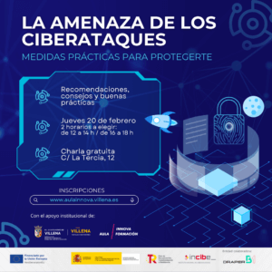 Aula Innova Formación ofrecerá una charla sobre ciberseguridad abierta a la ciudadanía que les permita disponer de una formación básica para proteger sus cuentas online, correo electrónico, redes y protección de datos. La sesión del taller está prevista el próximo 20 de febrero, en turno de mañana y de tarde. La inscripción en cualquiera de los horarios de los talleres se puede realizar en https://www.villena.es/innova-actividades-gratuitas/.