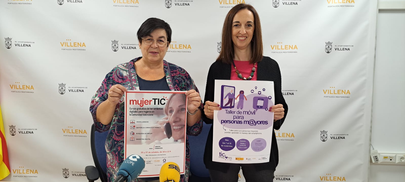 Aula Innova, el servicio de formación en nuevas tecnologías del Ayuntamiento de Villena, ha presentado hoy su oferta de otoño, que está dedicada a la lucha contra la brecha digital y a la mejora de las competencias digitales de la población que más dificultades tiene, según han explicado hoy la edil de Formación, Paula García, y la técnico del Aula, Virtudes Muñoz. Además, han informado de la amplia oferta que Aula Innova ofrece a través del programa Aula Mentor, que cuenta con la colaboración del Ministerio de Educación, y ofrece más de 30 cursos diferentes de distintas unidades de competencias, todos ellos con certificación oficial.