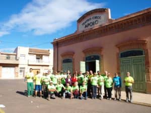 A las 7 de la mañana, 30 socios de Aviana salimos en autobús desde Villena en dirección a El Algar, la diputación más poblada de Cartagena (8.000 habitantes). Nuestros anfitriones nos esperaban, para en primer lugar, dirigirnos al teatro circo Apolo, donde nos enseñaron este magnífico y original edificio modernista de 1.905. Pedro Esteban, nos contó de forma amena las peculiaridades e historia de esta singular construcción, declarada Bien de Interés Cultural en 1998. Fue construido en pleno auge de la Sierra minera de Cartagena – La Unión. Destaca entre otras cosas, su telón pintado a mano que ha sido recientemente restaurado. Al término de la visita los anfitriones algareños nos ofrecieron un rico chocolate con bollos.