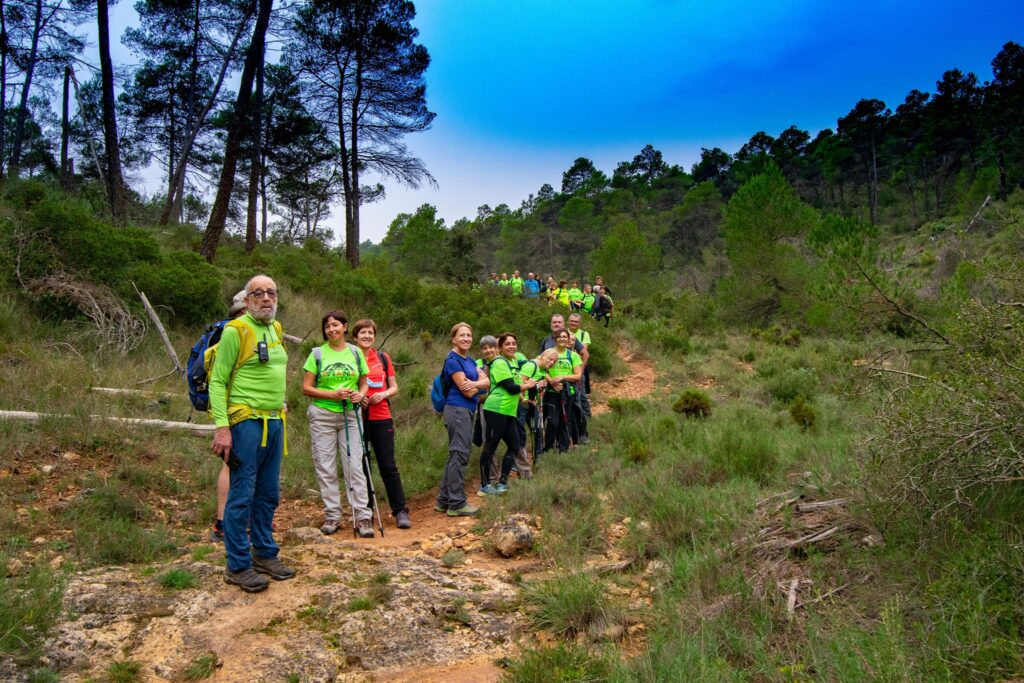Seguidamente, nuestra ruta nos llevó por una ladera de la montaña con vistas al valle de la localidad de Fontanar del Alforins y en este lugar tomamos un descanso para almorzar y reponer fuerzas. A continuación, llegamos a la casa forestal situada junto a la carretera y desde allí descendimos hasta el área recreativa de La Fuente de Pérez. Posteriormente ascendimos por el barranco del mismo nombre hasta nuestro punto de partida. En dicho recorrido, contemplamos una vegetación singular, que debido a la presencia de abundante humedad se pueden observar algunas especies de roble valenciano, fresnos, ruscos y durillos, así como abundantes encinas.